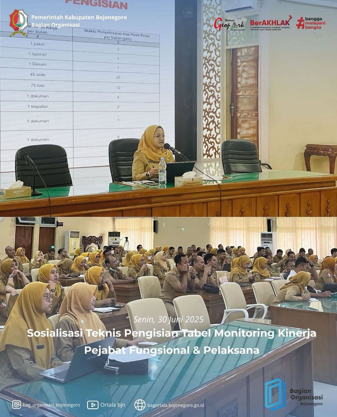 Bagian Organisasi Setda Bojonegoro melakukan Sosialisasi Teknis pengisian Tabel Monitoring Kinerja Pejabat Fungsional & Pelaksana.
